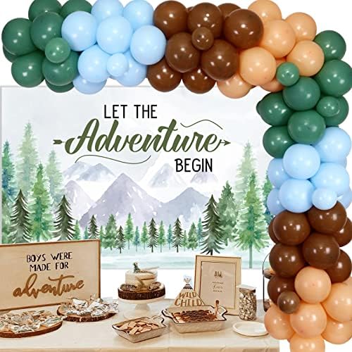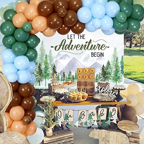 Journey Child Bathe Decorations, Let The Journey Start Backdrop Sage Inexperienced Balloon Garland Arch Equipment for Woodland Forest Mountain Wilderness Occasion Provides