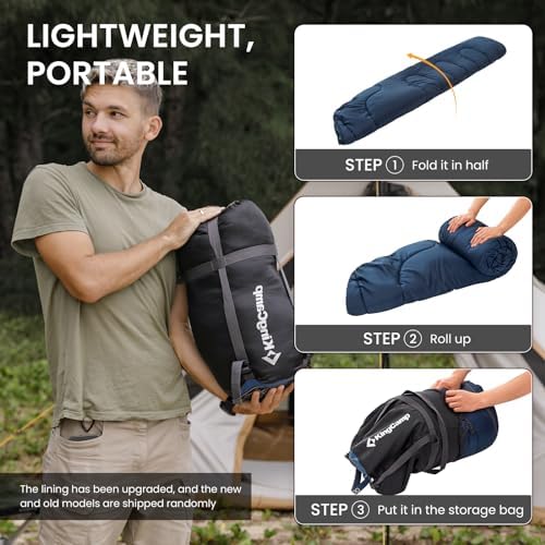 【3-4 SEASON SLEEPING BAG】This tenting sleeping bag can be utilized in chilly and heat climate in 3–4 seasons. Consolation temperature: 44℉; restrict temperature: 35℉; excessive temperature: 8℉. This KingCamp sleeping bag is a should for each camper. It’s straightforward to wash, which will increase its attractiveness. It is vitally appropriate for out of doors existence comparable to tenting, backpacking, mountain climbing or automotive journey.