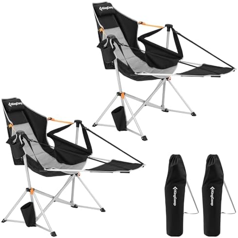 KingCamp Tenting Chair, Hammock Chair, Folding Rocking Chair, Aluminum Adjustable Again Swing Chair, Chair with Detachable Footrest Pillow Cup Holder for Outside Seaside Garden