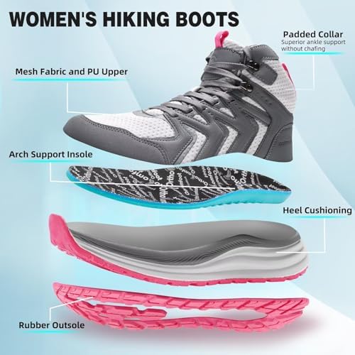 Ladies’s Orthopedic Mid Trekking Mountain climbing Boots: Comfy Plantar Fasciitis Ankle Help Exercise Strolling Working Footwear, Orthotic Work Sport Cross Coaching Path Sneakers for Ft and Heel Ache Reduction