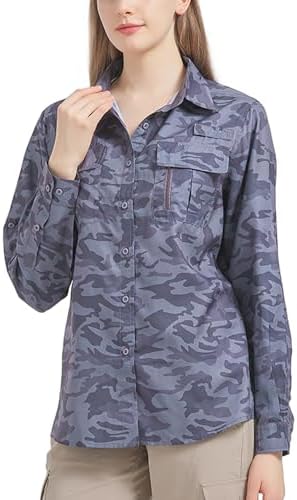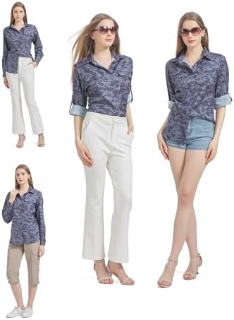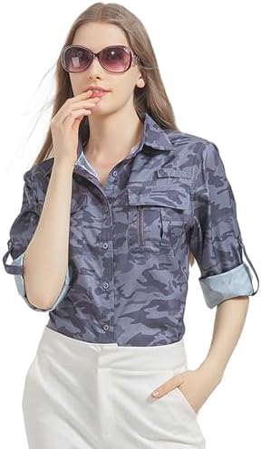 Ladies’s UPF 50 Lengthy Sleeve UV Solar Safety Safari Shirts Out of doors Fast Dry Fishing Mountain climbing Journey Shirts