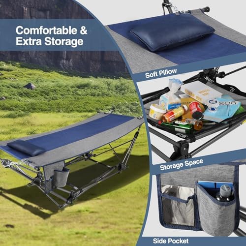 Sensible Design: The foldable hammock is handy. Smooth pillows assist you to relaxation comfortably. The cup holders and pockets proper subsequent to your fingers. There may be additionally a big mesh pocket beneath to retailer your belongings.