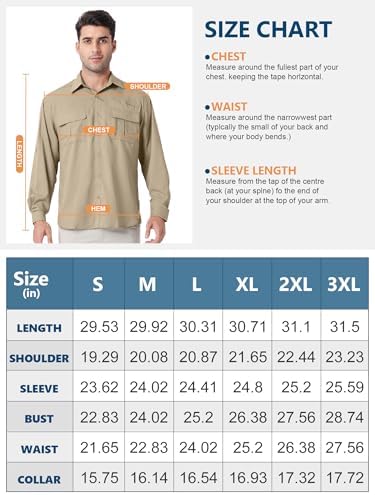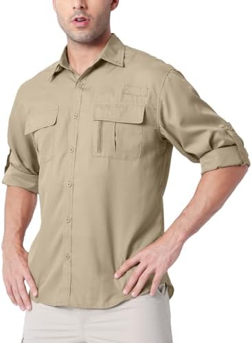 Males’s UPF 50+ UV Lengthy Sleeve Solar SPF Safety Button Down Fast Dry Shirts Cooling Fishing Breathable for Safari Climbing