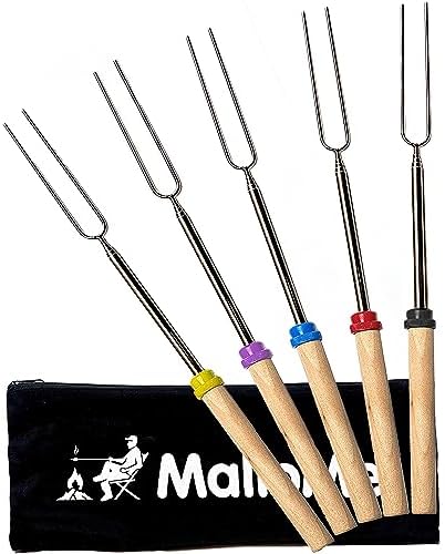MalloMe Smores Sticks for Hearth Pit Lengthy – Marshmallow Roasting Sticks Smores Package – Smore Skewers Sizzling Canine Fork Campfire Cooking Tools, Tenting Necessities S’mores Gear Out of doors Equipment 32″ 5 Pack