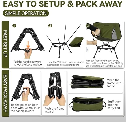 Straightforward to Setup & Fold Away: The intuitive shock-corded system shortly snaps the body into place. Then simply slip the material seat onto the 4 poles. You might be seated in below a minute. For tidy stowage, two built-in Velcro straps allow you to merely safe the folded poles on one facet, then wrap the opposite. The seat cloth begins comfortable for lasting stability, breaking in for simpler setup.