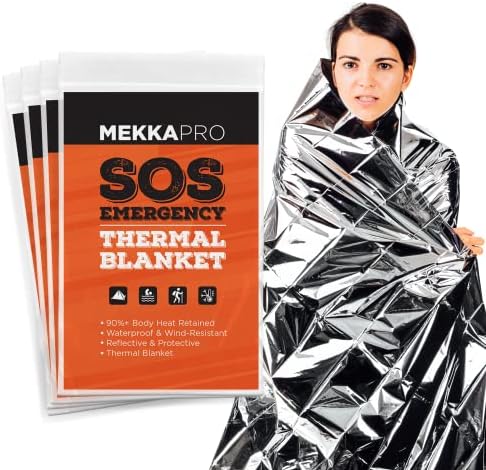MEKKAPRO Emergency Mylar Thermal Blankets (4-Pack), Pocket Sized for Emergencies, Tenting, Outdoor, Climbing, Survival, First Help (Thermal Silver)