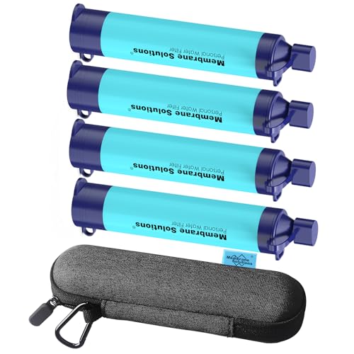 Membrane Options 4Pack Water Filter Straw with A Storage Case, Water Filter Cowl, Moveable Private Water Air purifier Straw Protecting Carrying Bag, for Journey Survival Emergency Preparedness