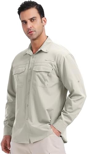 Males’s lengthy sleeve moisture wicking shirts Button Down Tactical Climbing Fishing Shirts