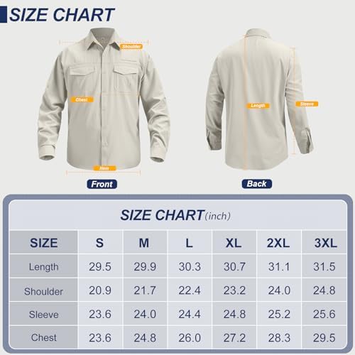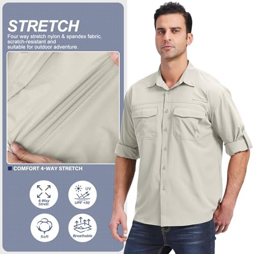 Mens Safari Shirt UPF 50+ UV Safety Lengthy Sleeve Fishing Cargo Shirt, Breathable and Quick Dry