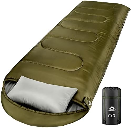 MEREZA Sleeping Bag for Adults Mens Youngsters with Pillow, XL Sleeping Bag for All Season Tenting Climbing Backpacking 3-4 Seasons Sleeping Baggage for Chilly Climate & Heat