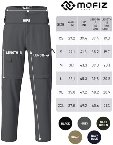 MoFiz Ladies’s Climbing Pants Convertible Fast Dry Light-weight Zip Off Outside Athletic Pants with 5 Deep Pocket