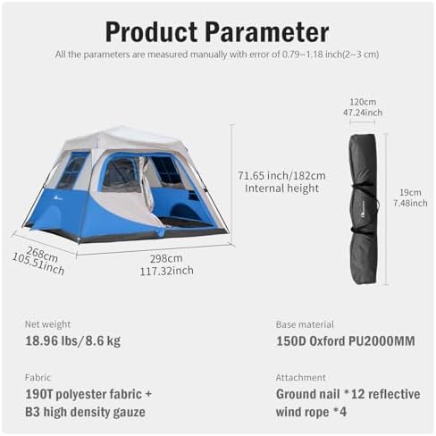 Spacious and Light-weight: Covers an space of 8 sq. meters, the cabin tent is spacious sufficient to accommodate 6-8 individual. Weights solely 8.6 kg (18.9 lbs), it may be saved in to the 120*19 cm (47*7.5 in) carry bag. Tremendous straightforward to hold it all over the place