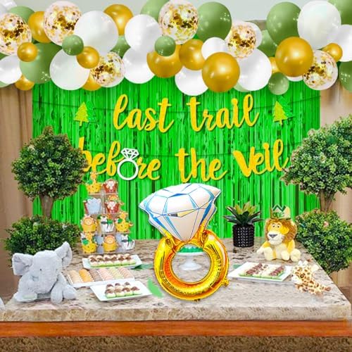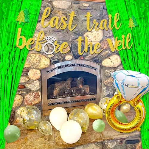Llast Path Earlier than The Veil Banner:You’ll obtain 1 Xgold glitter Final Path Earlier than The Veil banner, 1 Xgreen curtain, 1 Xring balloon, 20 X12′ latex balloons (5 Xteal, 5 Xgold, 5 Xwhite, 5X sequin) (proven in picture 2)