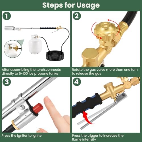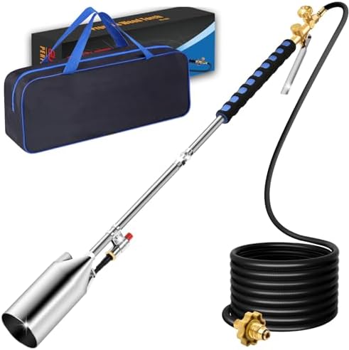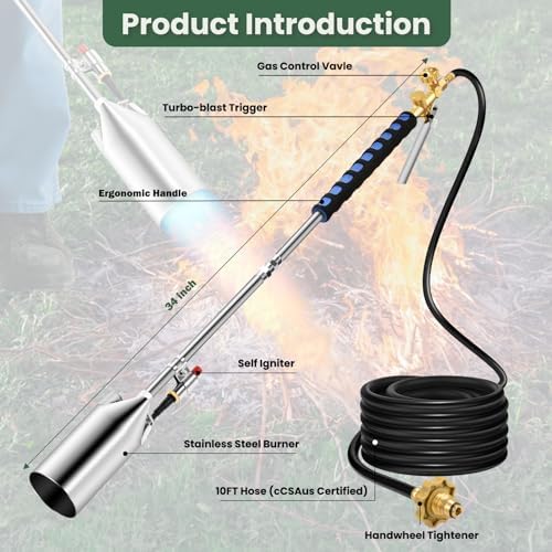 ALL-PURPOSE WEED BURNER TORCH – The propane torch weed burner is extremely versatile. It may be used to take away weeds from a wide range of surfaces, together with concrete, asphalt, and gravel. It could actually even be used to take away weeds from backyard beds and round bushes with out damaging the crops.