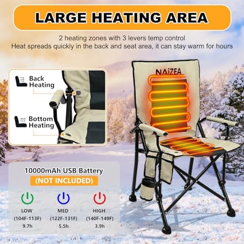 【FOLABLE & PORTABLE】 The heated folding chair is moveable and light-weight, weighting solely 10.4 kilos and having a carry bag for transport and storage. It’s easy to move and gained’t take up a lot space for storing, making it excellent for outside actions akin to mountain climbing, touring and tenting.