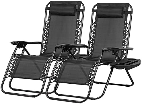 Nazhura Set of two Enjoyable Recliners Patio Chairs Adjustable Metal Mesh Zero Gravity Lounge Chair Seashore Chairs with Pillow and Cup Holder Black
