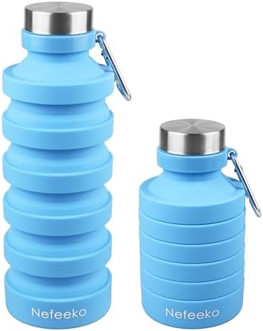 Collapsible Water Bottle, Reuseable BPA Free Silicone Foldable Water Bottles for Journey Health club Tenting Mountain climbing, Moveable Leak Proof Sports activities Water Bottle with Carabiner