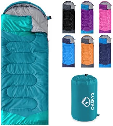 oaskys Tenting Sleeping Bag – 3 Season Heat & Cool Climate – Summer time Spring Fall Light-weight Waterproof for Adults Children – Tenting Gear Tools, Touring, and Outside