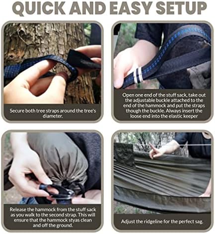 CAMPING HAMMOCK WITH ADJUSTABLE TREE-FRIENDLY 12FT HAMMOCK STRAPS: Every set accommodates a pair of tree straps that measures 10ft and offers the lightest and most compact suspension to your hammock. In contrast to different many loops tree straps, this single-layer tree straps are lighter and simpler to regulate with our sturdy cinch buckles. It is lighter than typical tree straps & carabiners by 200g(7oz)/pair.