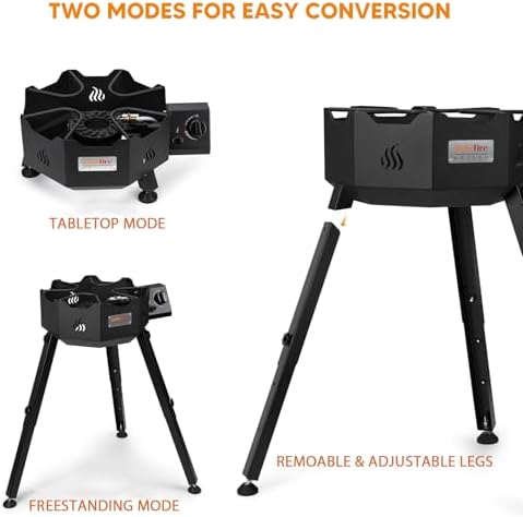 【VERSATILE DESIGN: TRIPOD OR TABLETOP BURNER STOVE】 This burner range options adjustable and detachable legs, comprising help foot, lengthen foot, and adjusting foot parts. It may be simply reworked right into a tripod burner range for out of doors cooking or used as a tabletop burner range on current surfaces like tables or decks, offering flexibility for various setups.