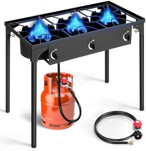 DURABLE IRON MATERIAL: The Three burner outside range is energy coated with weather-resistant and it is fabricated from bolstered iron to make sure sturdiness and stability, sturdy in order that it might probably guarantee a very long time outside utilizing