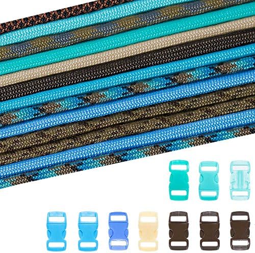 550 PARACORD COMBO KIT contains Kind III 7-strand 550 paracord with matching buckles. Paracord is manufactured from 100% nylon coated in a woven 32-strand nylon sheath. Endures any job with a tensile power of 550 kilos for reliable tie downs, makeshift shelters, and transporting tools.