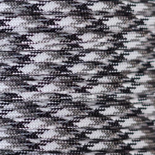 Our paracord is 550lb. Industrial Grade parachute wire. It has a core of seven interior 2-ply strands surrounded by a nylon cowl with a minimal breaking strenght of 550lbs.