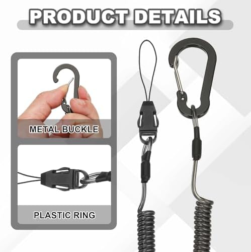 Coiled Lanyards with Buckle Retractable Security Ring and Fast Launch Removable Buckle for Fishing Tools