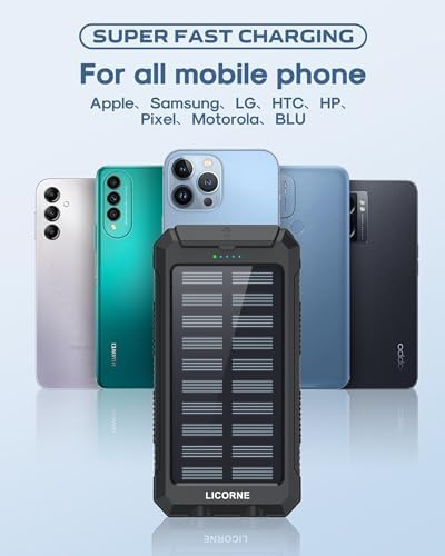 【Multi-Objective Outside Energy Financial institution】LICORNE transportable photo voltaic charger is made IPX67 waterproof. The built-in twin tremendous vivid flashlight and the included compass carabiner, are the best companion for outside fanatics.