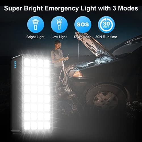 Photo voltaic Charger Energy Financial institution, 60000mAh Transportable Charger Appropriate with iPhone, Cell Cellphone, 32 LEDs Exterior Battery Pack for Outside Tenting, Residence Emergency, 4 Output& 2 Enter Ports (Black)