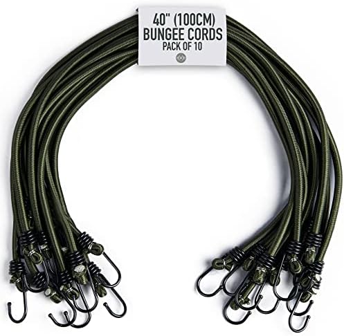 Pluvios – 40″ (100cm) Bungee Cords with Hooks Heavy Responsibility Outside – 10 Pack – Selection of Sizes – Multi-Objective Elastic Bungee Straps for Baggage, Tenting – Weatherproof & UV