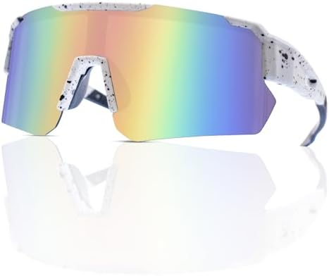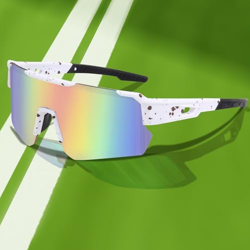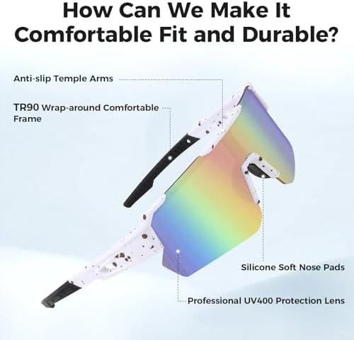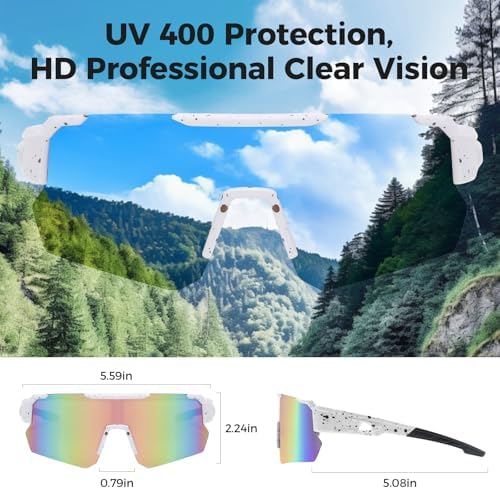 【Light-weight & Warp-around Snug】Say goodbye to the burden of heavy sports activities sun shades! With an ultralight PC body, solely about 26 grams weight, there isn’t any strain to put on them in your face. these biking sun shades for males make you neglect you are even sporting them throughout your exercise. they supply light-weight consolation, making certain your nostril stays fatigue-free even throughout prolonged put on. Air flow holes on the aspect of the baseball glasses forestall fogging throughout use.