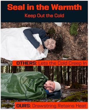 EMERGENCY READY: Geared up with a brightly coloured built-in whistle , this survival sleeping bag has on the spot security alerts that improve visibility at evening; Its drawstring opening helps retain heat, making it a great survival tarp or cowl