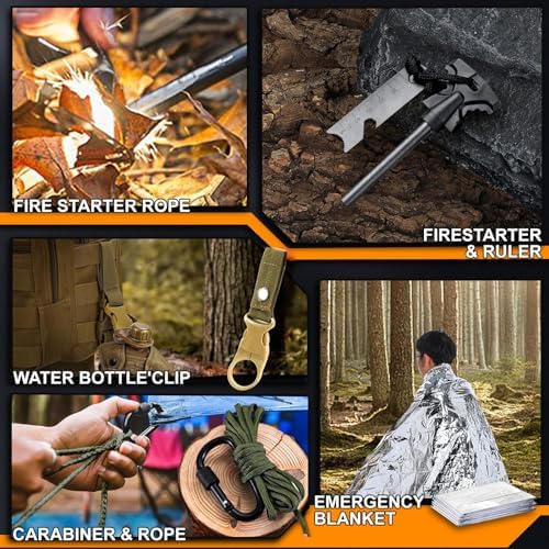 【Multifunctional & Cool】21 Pcs emergency survival package contains important gadgets akin to a survival knife, fireplace starter, tactical pen, flashlight, wire noticed, emergency blanket, bank card, multi-use spoon fork, and waterproof field. With these skilled survival gear and gear, you possibly can take pleasure in a protected and simple outside time.