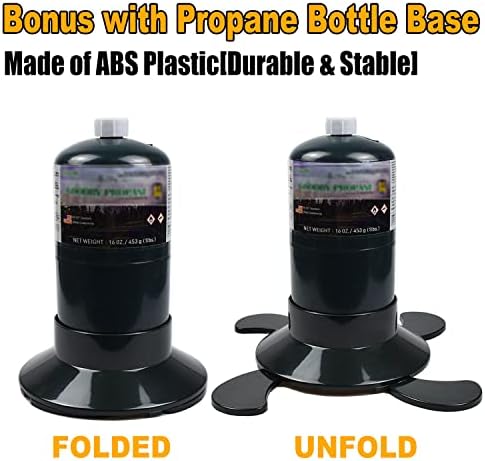 Propane Bottle Base – Made from excessive impression plastic for reliability.Suitable with most traditional 1lb propane canisters(Not included).