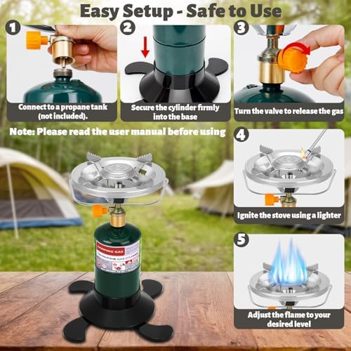 Tenting Range Propane with Secure & Straightforward Operation: Excellent for each seasoned campers and newbies. Merely arrange the camp stoves for tenting and switch the flame management, ignite, and also you’re able to prepare dinner. The clear and safety-first person guide of single burner camp range ensures peace of thoughts for households, first-timers, and anybody new to propane stoves