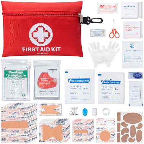 [COMPACT & COMPREHENSIVE] PTEROMY 150PCS Small first assist package covers important provides for each day emergencies, together with adhesive band-aids, burn dressings, wipes, tourniquets, emergency blankets, scissors, security pins, triangular bandages and extra. Whether or not for each day use or outside actions, it supplies ample provide for minor cuts, burns, bruises, and different incidents.