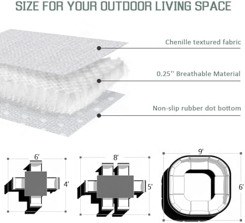 Smooth Out of doors Rug: This isn’t an outside rug just like the plastic sort, it is a lot nicer than that. Out of doors rugs is manufactured from high-quality chenille supplies, the weave is tight and is woven – not an outside plastic straw rug, can stand up to pool water/rain/wind/leaves and different issues. Out of doors patio rug is smooth and comfy underneath your ft, and would not get sizzling within the solar, even when actually sizzling and sunny it’s comfy to stroll on barefoot so this retains the deck ground from burning you