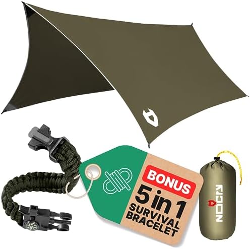Rain Fly 12×10 Light-weight Survival Tenting Tarp; 100% Waterproof; Makes a Nice Backpacking Tarp or Hammock Shelter; Is available in A number of Colours, Survival Bracelet Included; OD-Inexperienced