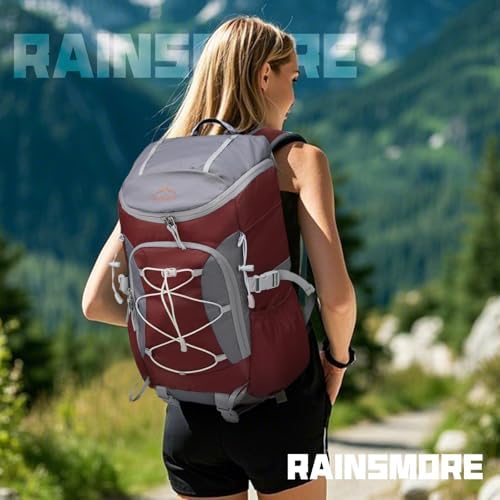 RAINSMORE Foldable Climbing Backpack for Ladies Males Packable Tenting Backpack 40L Waterproof Climbing Daypack Bag Light-weight Collapsible Daypack for Journey Trekking Mountaineering Massive Capability Crimson