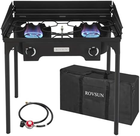 🔥150,000 BTU OUTPUT: Provided with two separate burner, (75,000 BTU for every) you may cook dinner a lot meals in the identical. Every burner has particular person knob to regulate warmth. Excellent to make household meals like frying fish/hen, steaming crabs, wok cooking.