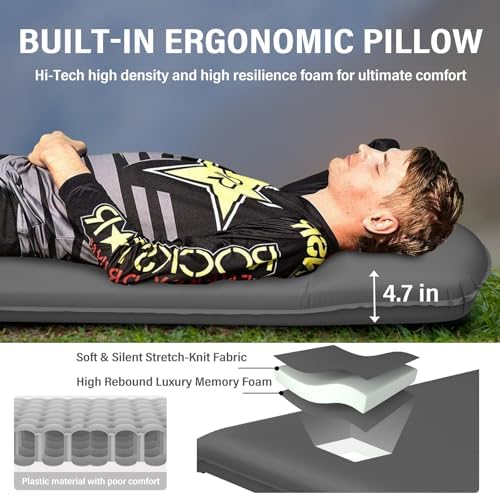 FIT FOR ALL SEASONS, NO NOISE – The sleeping pad’s foam insulates chilly air from the bottom, and the pongee waterproof coating on the floor is moisture-proof and breathable, retaining you heat in winter and funky in summer time. The delicate material of the self-inflating tenting pad ensures no noise. You may sleep peacefully with none disturbance and get up feeling refreshed.