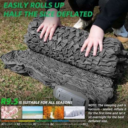 𝟗.𝟓 𝐑-𝐕𝐚𝐥𝐮𝐞 𝐀𝐥𝐥-𝐒𝐞𝐚𝐬𝐨𝐧 𝐒𝐥𝐞𝐞𝐩𝐢𝐧𝐠 𝐏𝐚𝐝: This inflatable tenting mattress, with its excessive R-value, helps to offer snug sleep in each chilly and heat circumstances. The self inflating tenting pad supplies dependable insulation in winter whereas remaining breathable and cozy in summer season. Whether or not you are tenting in chilly climate, having fun with summer season nights, or utilizing it at house, this sleeping pad for tenting helps to make sure consolation and heat all 12 months spherical.