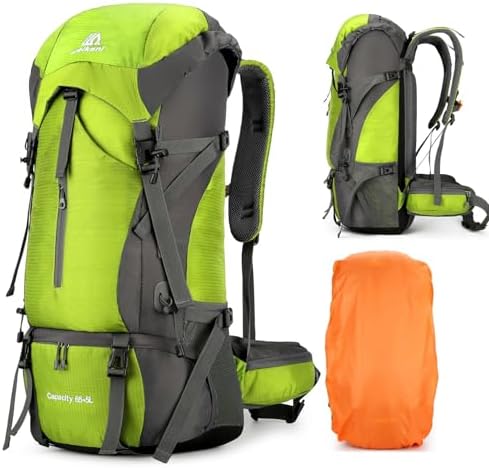 ShowyLive 70L Mountain climbing Backpack – Light-weight Waterproof Journey Backpack for Males & Ladies, Foldable Daypack with Rain Cowl for Tenting & Outside (Fluorescent Inexperienced)