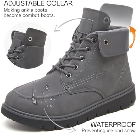Shupua Girls’s Ankle Boots Black Lace Up Winter Mountaineering Work Waterproof Fight Booties