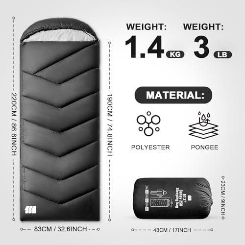 【GREAT SLEEPING BAGS FOR ADULTS AND KIDS】SIZE: 32.5 by 86.6 inches (W x D),Extra spacious than an everyday sleeping bag. Opens as much as make a pleasant comforter,making them superb for tall teenagers, adults, or household tenting journeys.