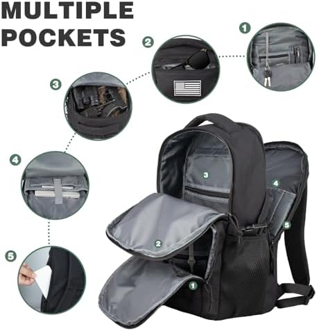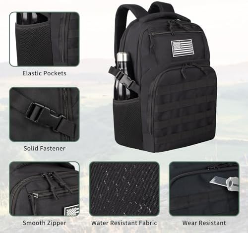 【Compact and Multifunctional】This small black tactical backpack is the right complement for you. It’s effectively made backpack with plenty of pockets, together with 2 laptop computer Compartments,that present glorious storage capability and group. This army assault backpack is a must have for each common out of doors highland tenting, mountain climbing, searching,health club or out of doors journey survival journey fanatic! It’s a every day rucksack for work, It’s compact and transportable small backpack