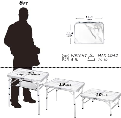 Compact Dimension and three Adjustable Heights: With its light-weight and compact design, this folding desk is simple to move and retailer. It presents three adjustable heights (10″, 19″, and 24″) to fit your particular wants