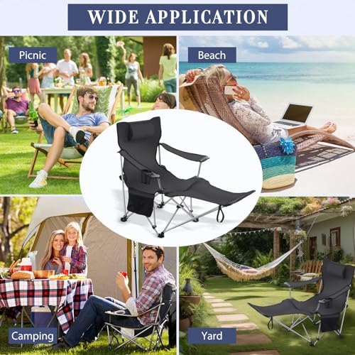 Soaoo 2 Items Moveable Reclining Tenting Chair Adjustable Folding Garden Chairs with Footrest Headrest and Carry Bag Broadband Oxford Material with Aspect Pocket and Cupholder, 330 lbs Weight Capability