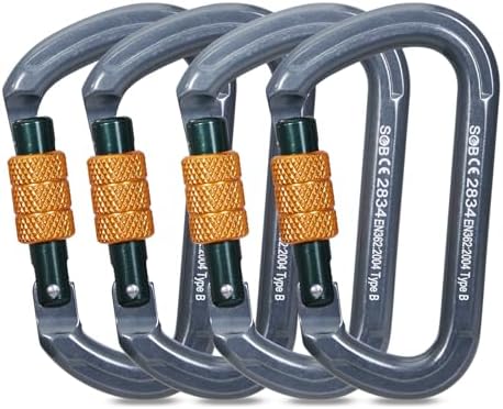 SOB Auto Locking Climbing Carabiner Clips 4Pack 28KN Heavy Obligation Asymmetrical Carabiner Connector Used for Rappelling Gear Rescue Outside Initiatives Canine Leash